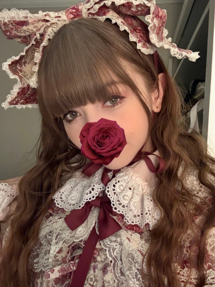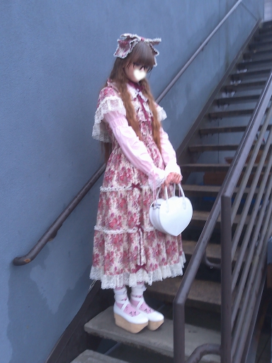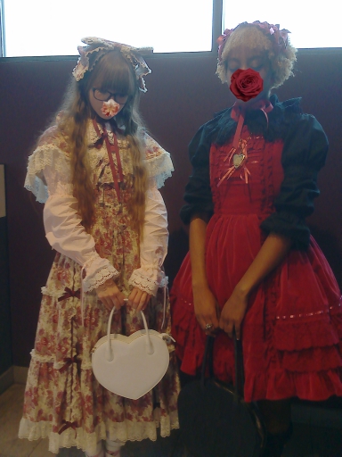 i really wanted to wear the new meta gobelin set since i hadn't worn it to an event yet , but it didn't feel very "valentine's-y", so i paired it with a pink baby blouse & pink floral socks my friend gifted me to fit the theme better..! i also of course had to bring my baby heart enamel bag..!